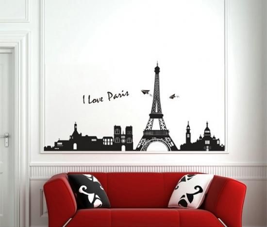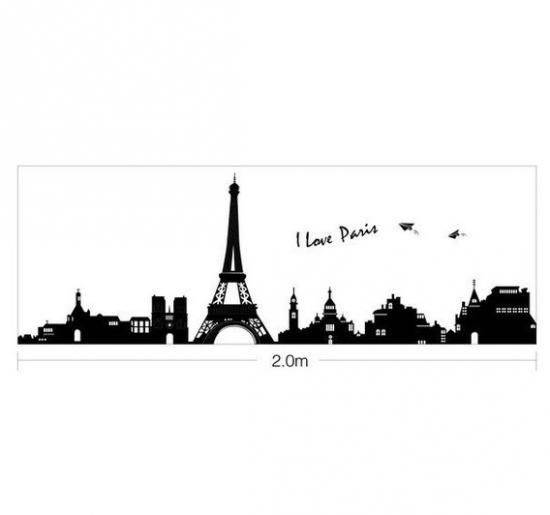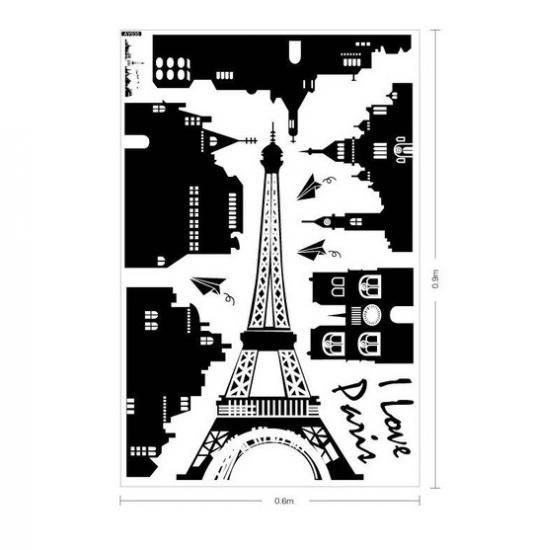 ウォールステッカー パリ エッフェル塔 壁シール ヨーロッパの街並み モノトーン 欧風 タワー 洋風 I Love Paris はがせる 壁しーる