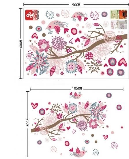 ウォールステッカー ブロッサムオブラブ 壁シール ピンクの花と小鳥 ハート フラワー 部屋のもようがえに 貼り直せる 壁ステッカー