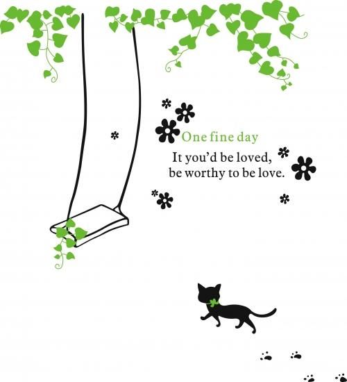 ウォールステッカー 黒猫とブランコ 壁シール お散歩 足あと 可愛い くろねこ お洒落文字 ハートリーフ 剥がせる インテリアステッカー