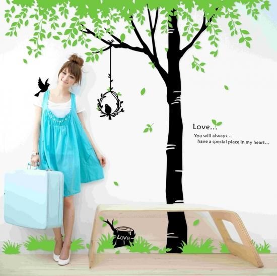 ウォールステッカー 大サイズ シンプル 木と鳥 ウォールペーパー シール 切り株 心が安らぐ 鳥の巣 自然 剥がしやすい 壁 緑の葉