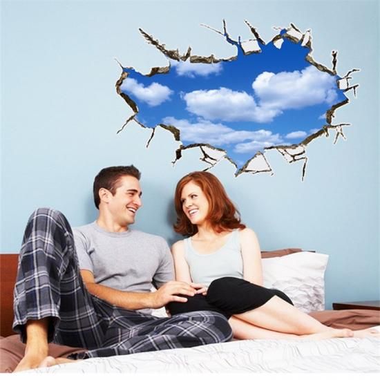 ウォールステッカー 空パターン 3D 壁シール トリックアート リアルな 雲 青空 開放的な気分 天井にも 剥がせる 立体 ウォールシール