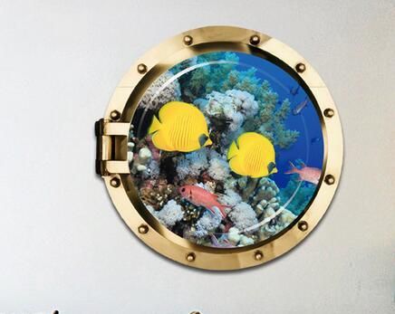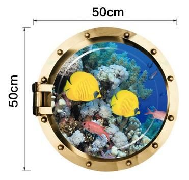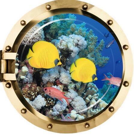 ウォールステッカー 潜水艦窓から 熱帯魚 珊瑚礁 3D壁シール 鮮やかな 模様 さかな鑑賞 綺麗 海底 貼り方簡単 デコれる ウォールシール