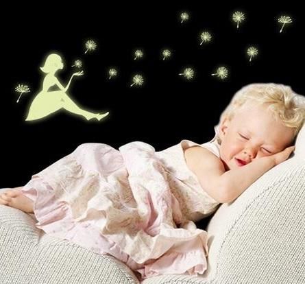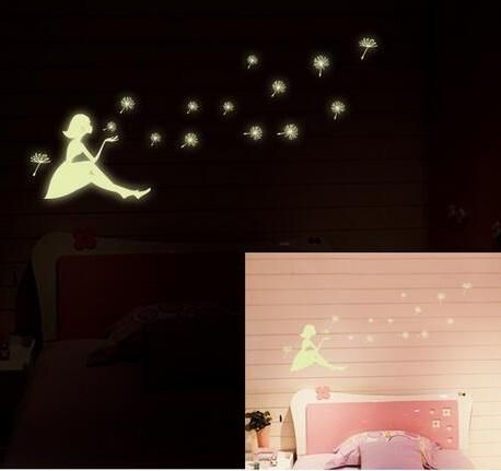 ウォールステッカー 光る タンポポのわたげ 女の子 蛍光シール ロマンチックな ナイトグロウ 暗い場所 蓄光 はがせる 妖精 壁シール