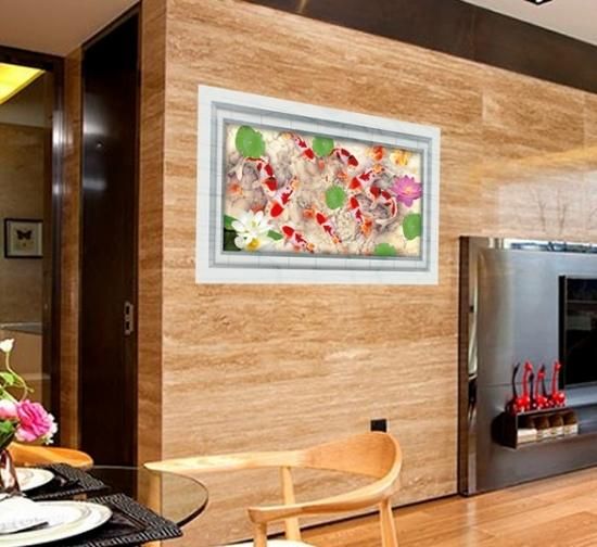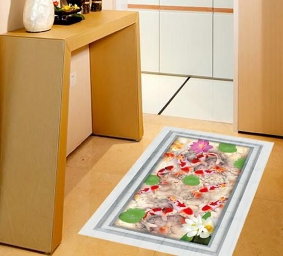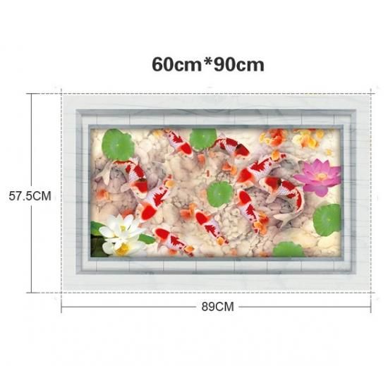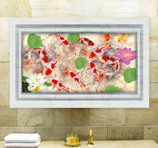 ウォールステッカー 池の錦鯉 蓮の花 3D壁シール 大理石 剥がせる 観賞魚 床 フロア用 だまし絵 洗面所 リアル ウォールデカール