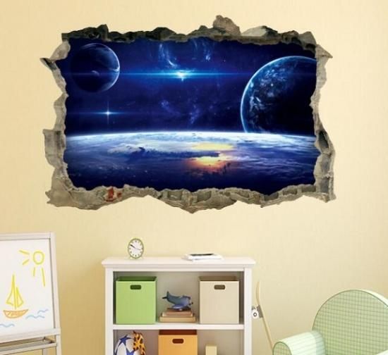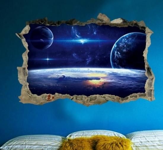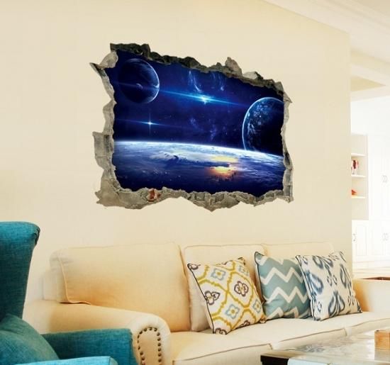 ウォールステッカー 青い宇宙 3D 壁シール 煌く 惑星 銀河 神秘的な 雰囲気 ネイビー 寝室 子供部屋 貼り直せる インテリアデカール